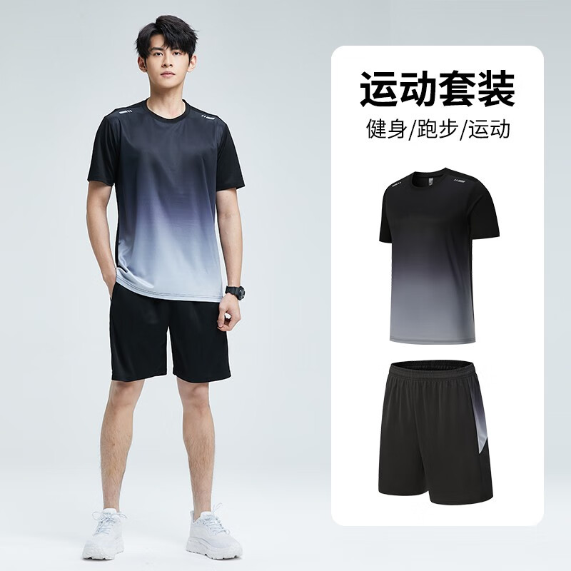 运动套装冰丝速干短袖T恤篮球训练短裤跑步服装备 6801灰色套装