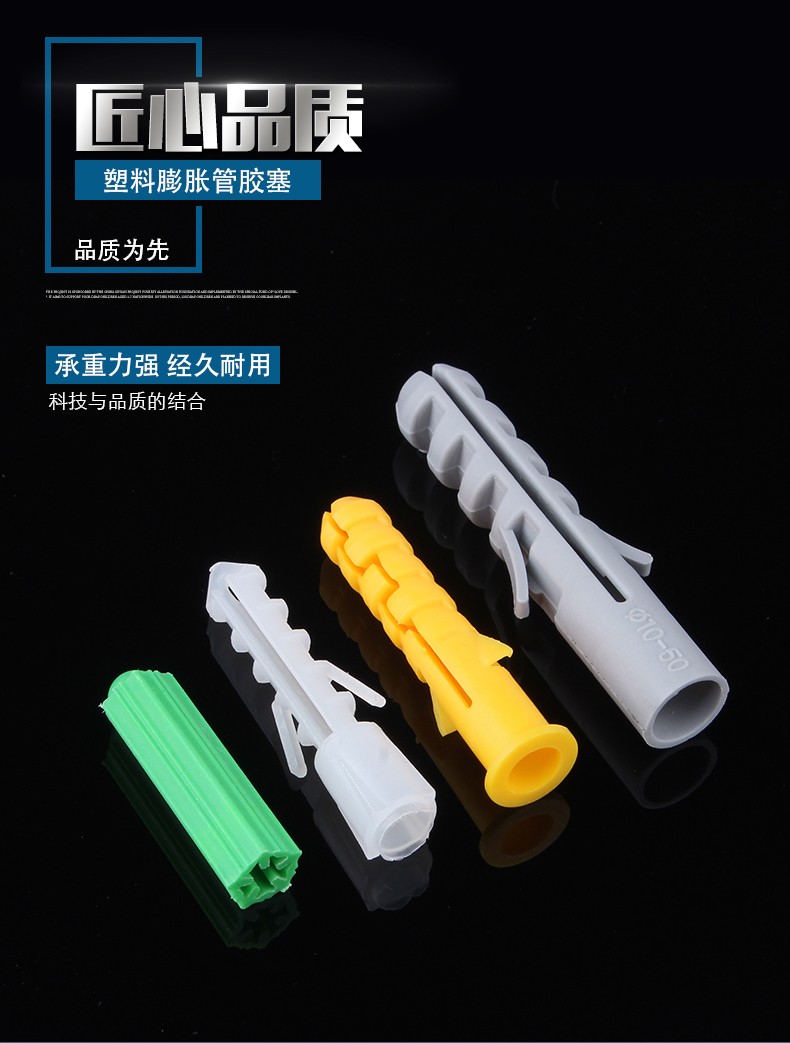 家居用品> 膨胀螺丝塑胶管尼龙涨塞锚栓 黄色M6*40[200只]