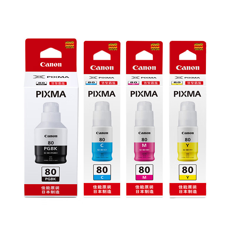 佳能(Canon)墨水GI-80 四色套装 黑/红/青/黄色(适用G6080/G7080/GM4080/G5080/GM2080)