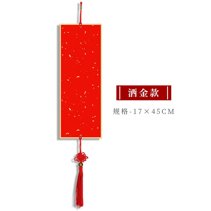 办公耗材> 纸质文具> 其他纸制品> 本悦 万年红硬卡新年挂饰小对联卡纸四言长方形福卡挂件宣纸毛笔字书法空白手写对联春联纸 洒金款 17*45cm挥春四字吉言1张 单位: