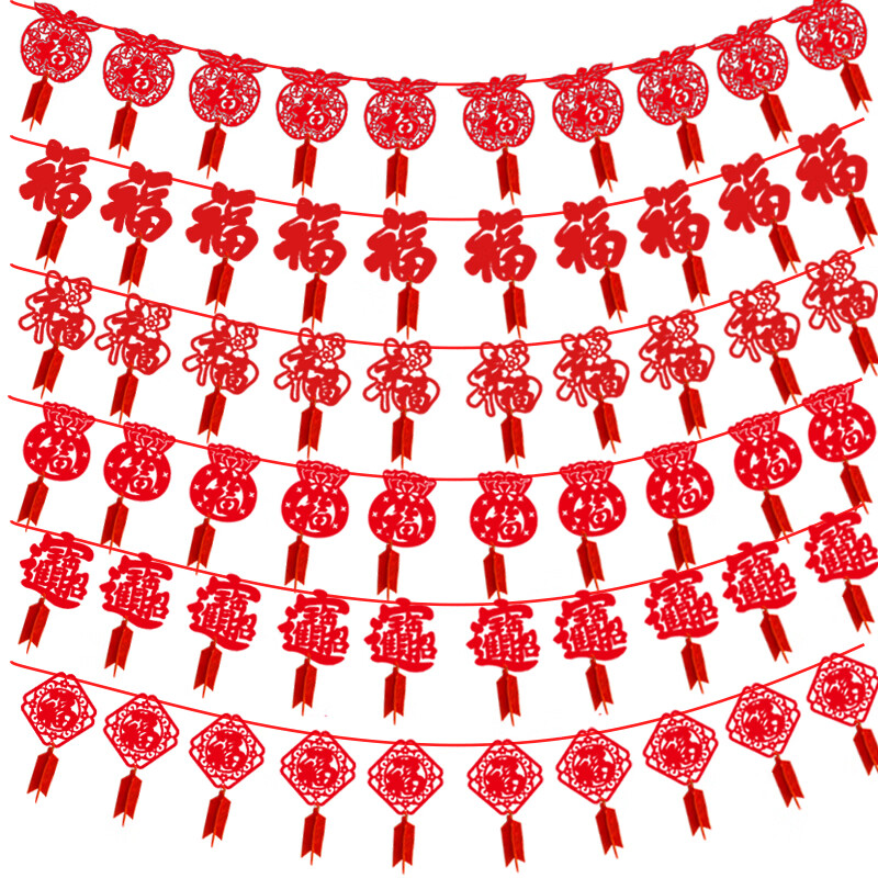 办公耗材> 文具> 其他文具> 新年装饰拉花4条装春节过年福字拉旗
