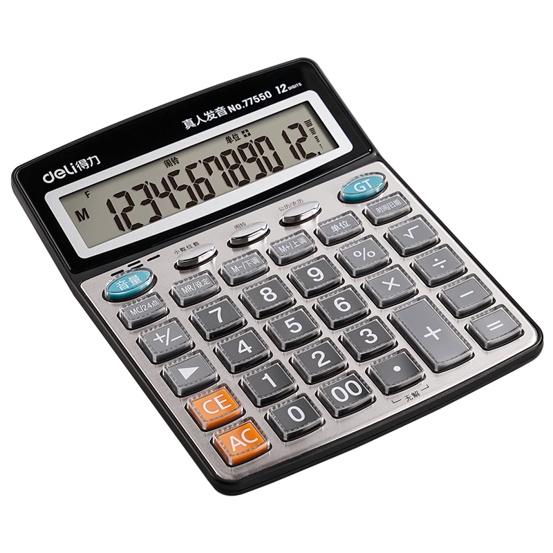 得力12位金属面板语音计算器 水晶大按键大屏幕财务计算器 皓月银77550 77550