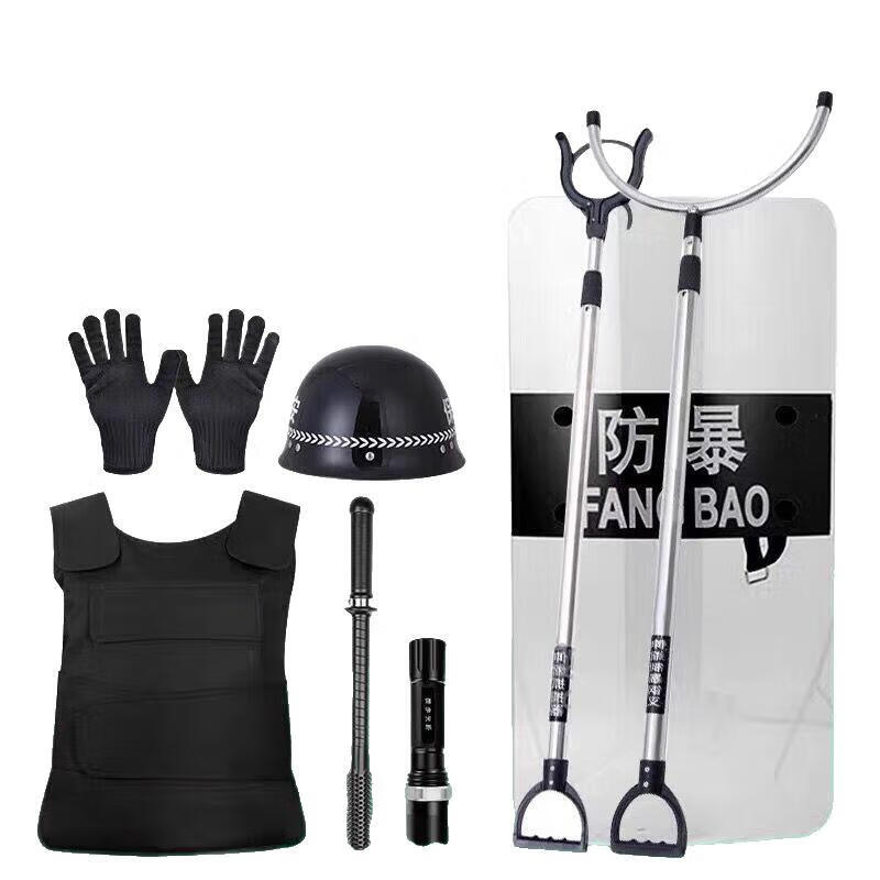 家居用品> 鸣固安保八件套 防暴器材套装含钢叉盾牌防刺服头盔门卫保安反恐维稳用品 8件套