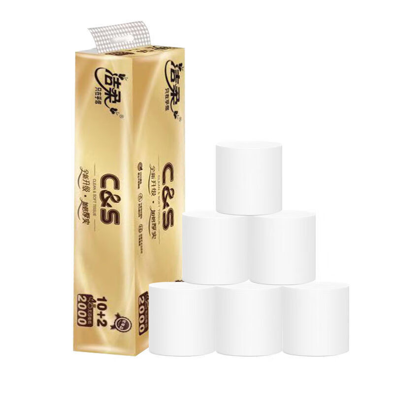 清洁用品> 纸制品> 无芯卷纸> 洁柔 卷纸金尊2000g实芯卫生纸家用无芯卷筒纸4层家用厕所纸 166g/卷*12卷 2000g