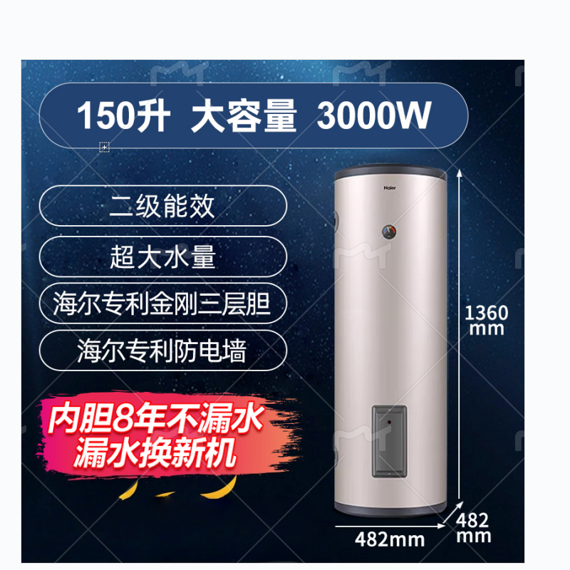 电器设备> 厨卫电器> 热水器> 海尔竖式热水器150升大容量 150升