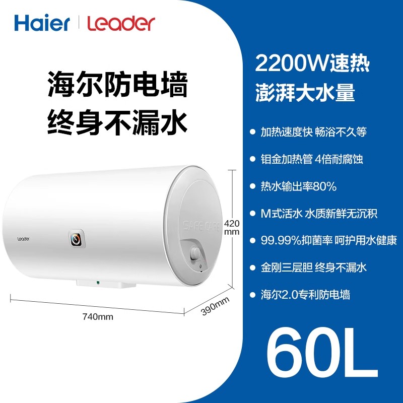 电器设备> 厨卫电器> 热水器> 海尔智家leader电热水器60升家用 60升
