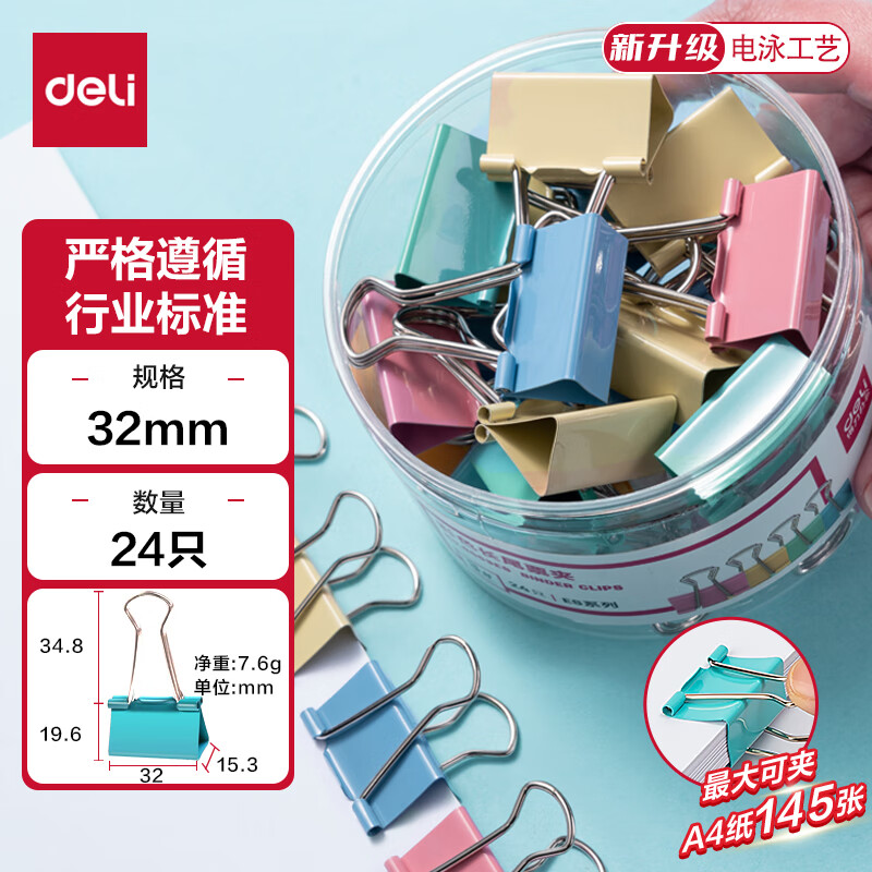 办公耗材> 文具> 其他文具> 得力32mm长尾夹 24只/盒 8553ES 32mm