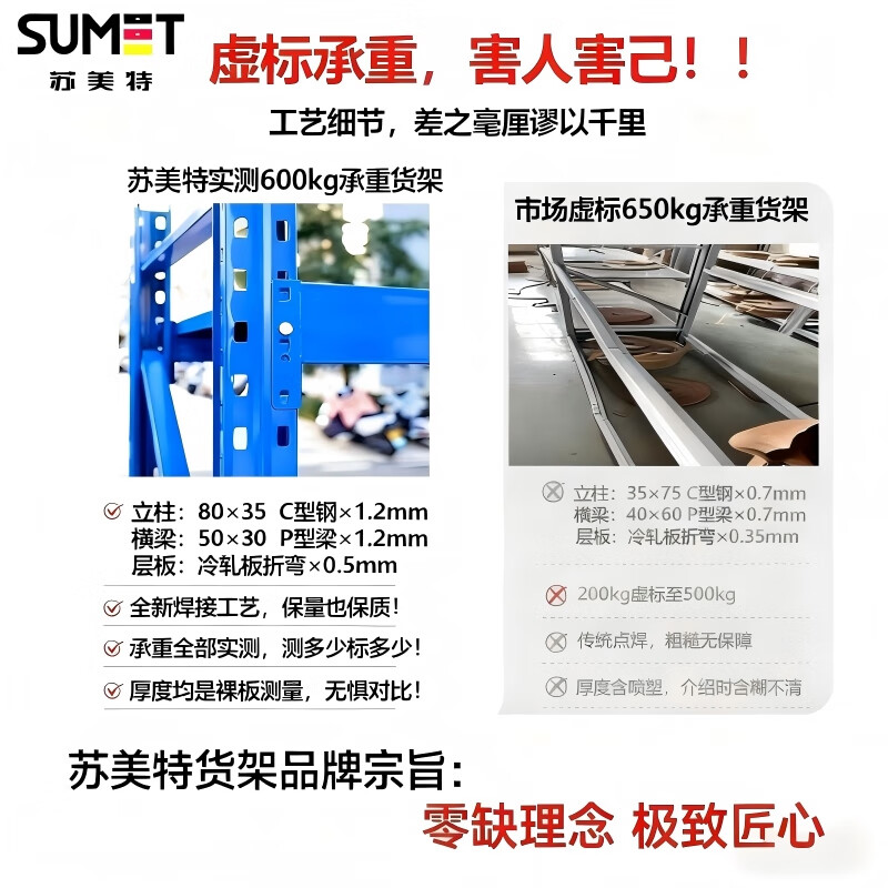 家居用品> 苏美特货架仓储库房超强承重型储物架多层落地一体多层置物铁架子长2m*宽0.6m*高2m 四层承重500kg / 组 500kg