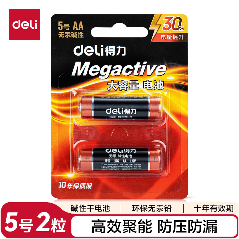 得力(deli)5号电池 碱性干电池2粒装 5号电池