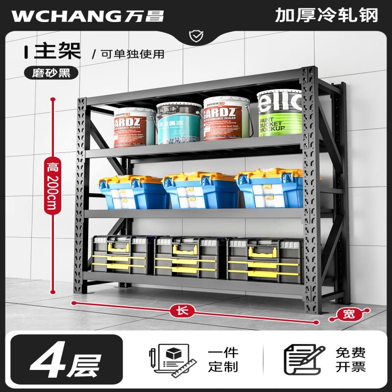 万昌磨砂黑色置物架4层 加厚长150*宽50*高200=【180kg/层】