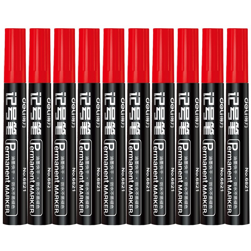 办公耗材> 文具> > 得力思达6821记号笔(红) 10支/盒