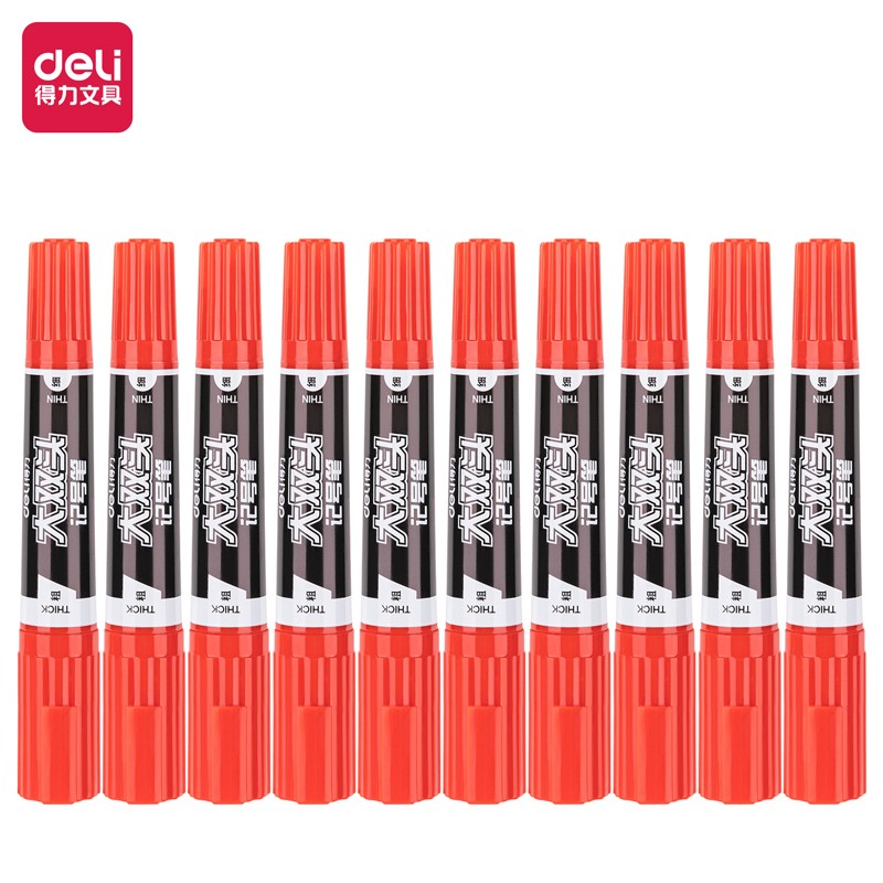 得力S555大双头记号笔(红) 10支/盒