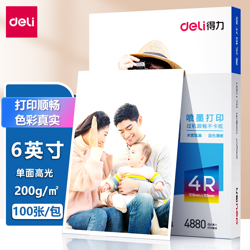 得力11821高光相片纸-4R-200g/㎡(白)(100张/盒)