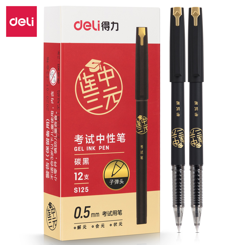 得力S125考试中性笔0.5mm子弹头(黑)12支/盒