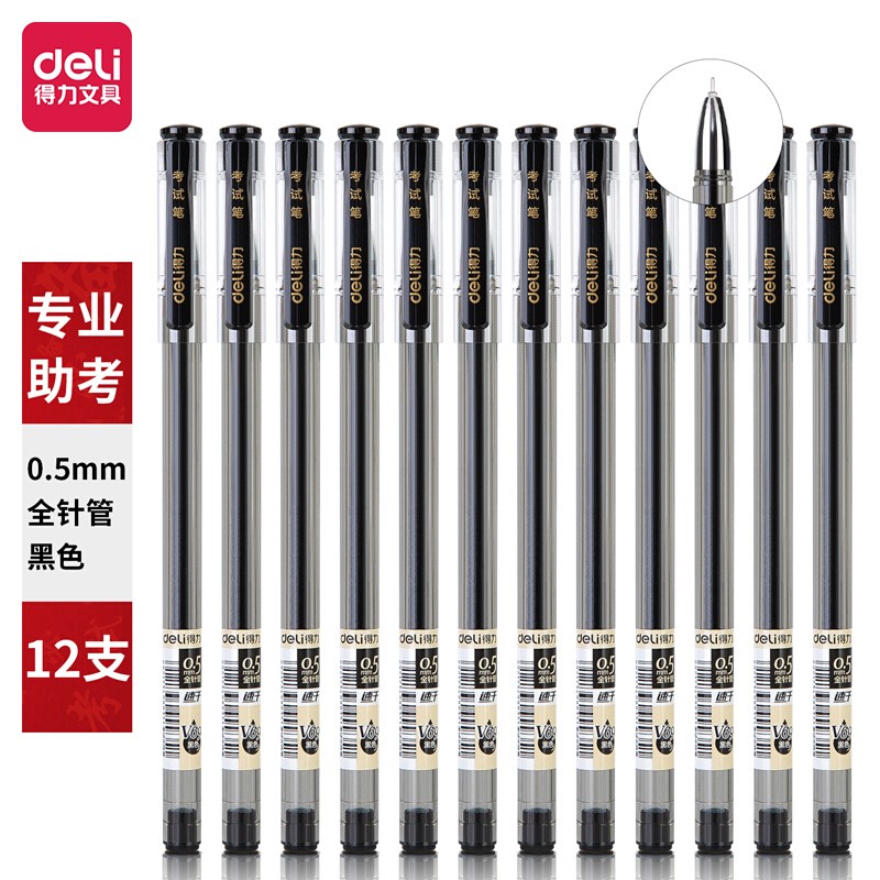 得力V69速干考试中性笔0.5mm全针管(黑)12支/盒