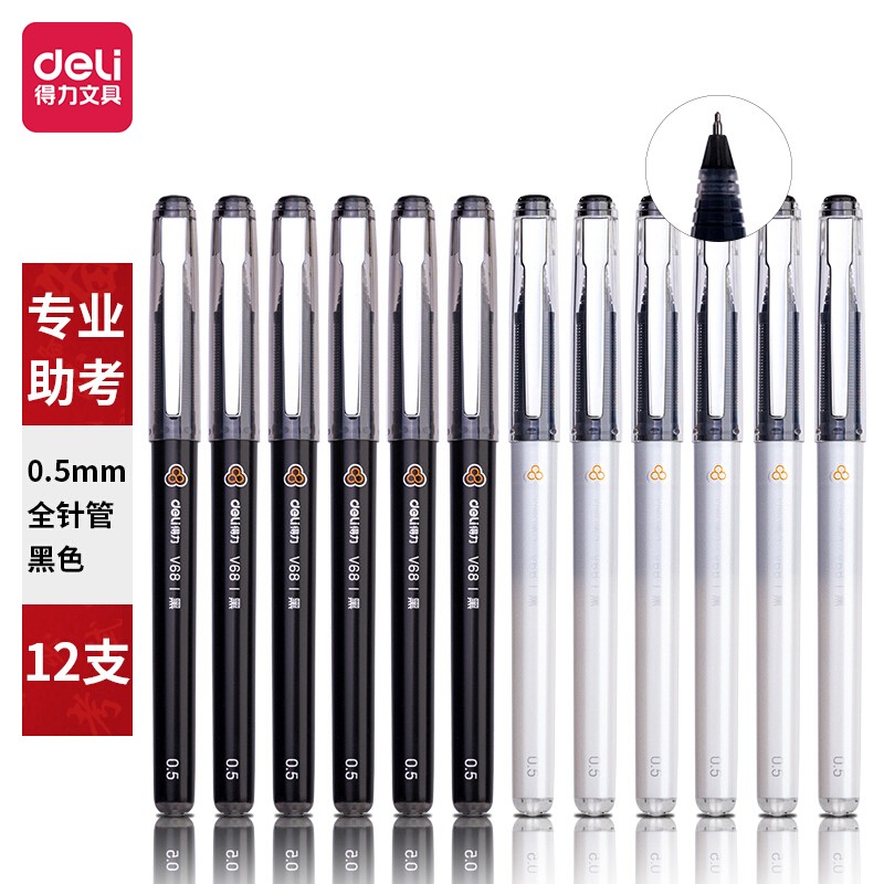 办公耗材> 文具> > 得力V68考试中性笔加强型针管0.5mm速干(黑)12支/盒