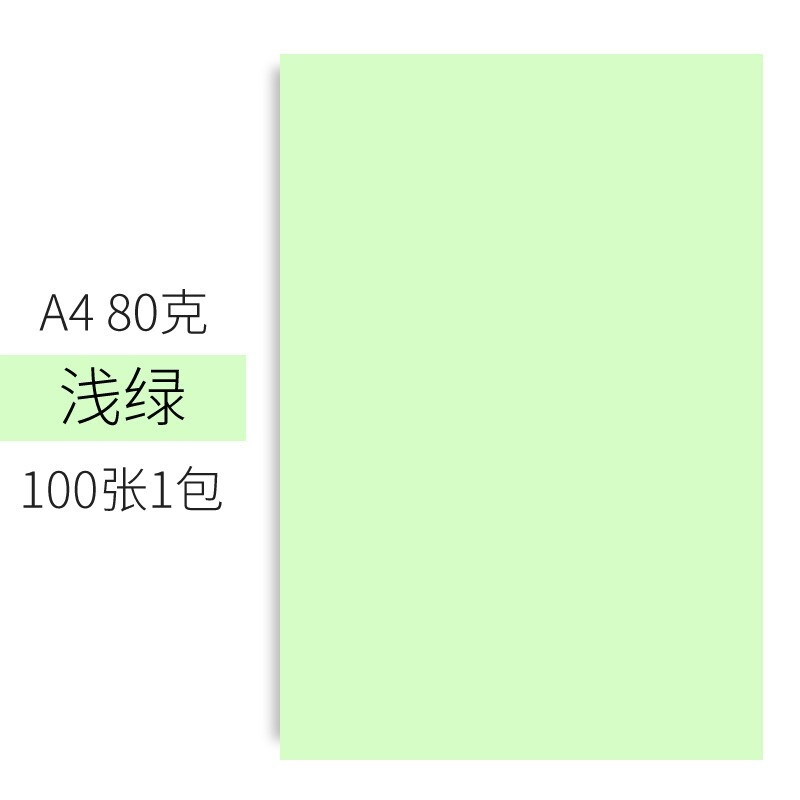 办公耗材> 纸质文具> 其他纸制品> 手工折纸彩纸a4儿童手工纸彩色纸 打印纸彩色A4纸 复印纸彩色卡纸硬加厚剪纸用纸 A4-80克 浅绿100张